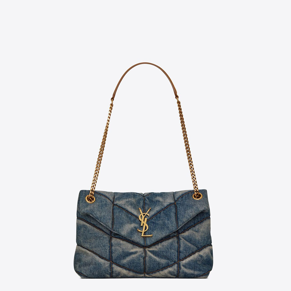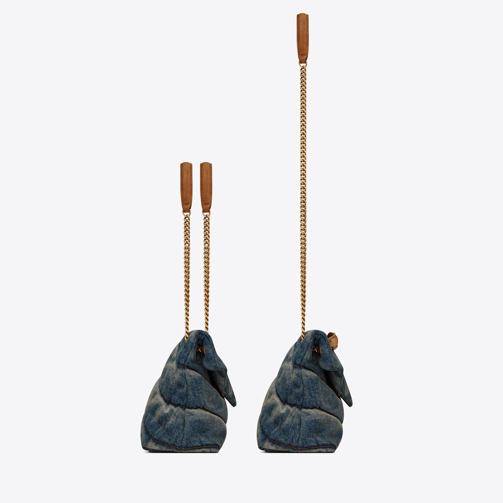I am extremely satisfied with my purchase of the YSL Small Puffer In Suede And Denim 577476 2PT67 4575. The shipping was incredibly fast, exceeding my expectations. The bag itself is absolutely stunning, with its soft envelope flap and beautiful chevron quilt overstitching. I love the versatility of the sliding chain strap, allowing me to wear it on my shoulder or crossbody as per my preference. The quality of the materials used is top-notch, ensuring durability and longevity.