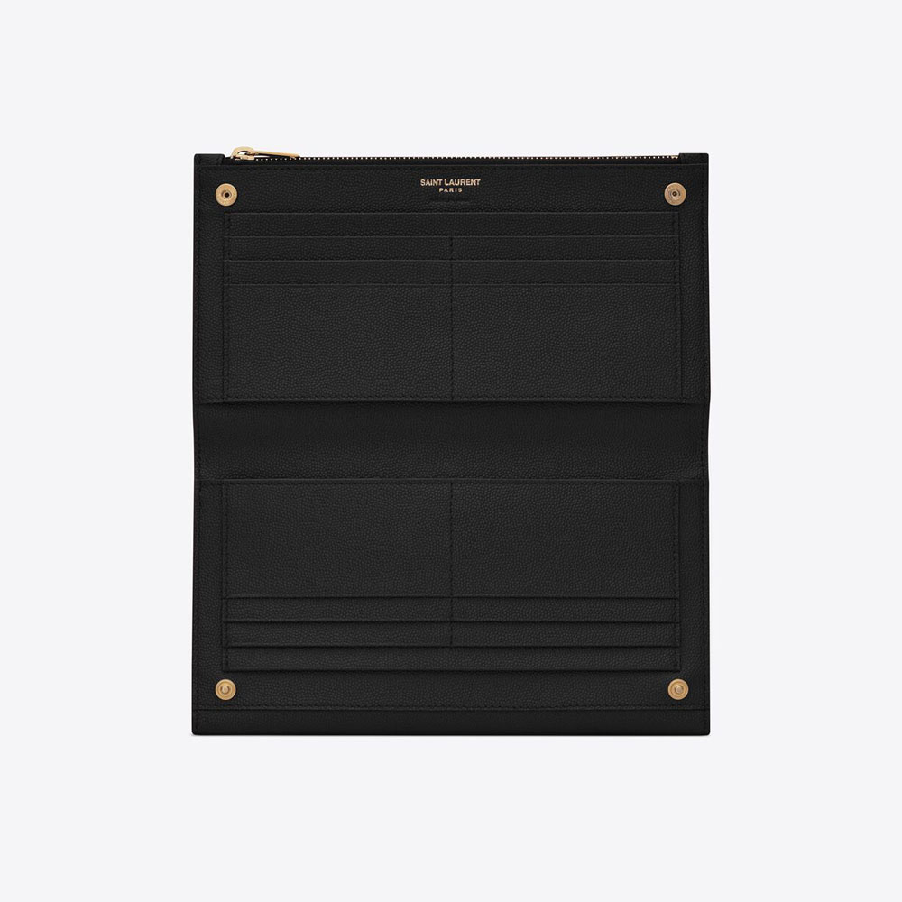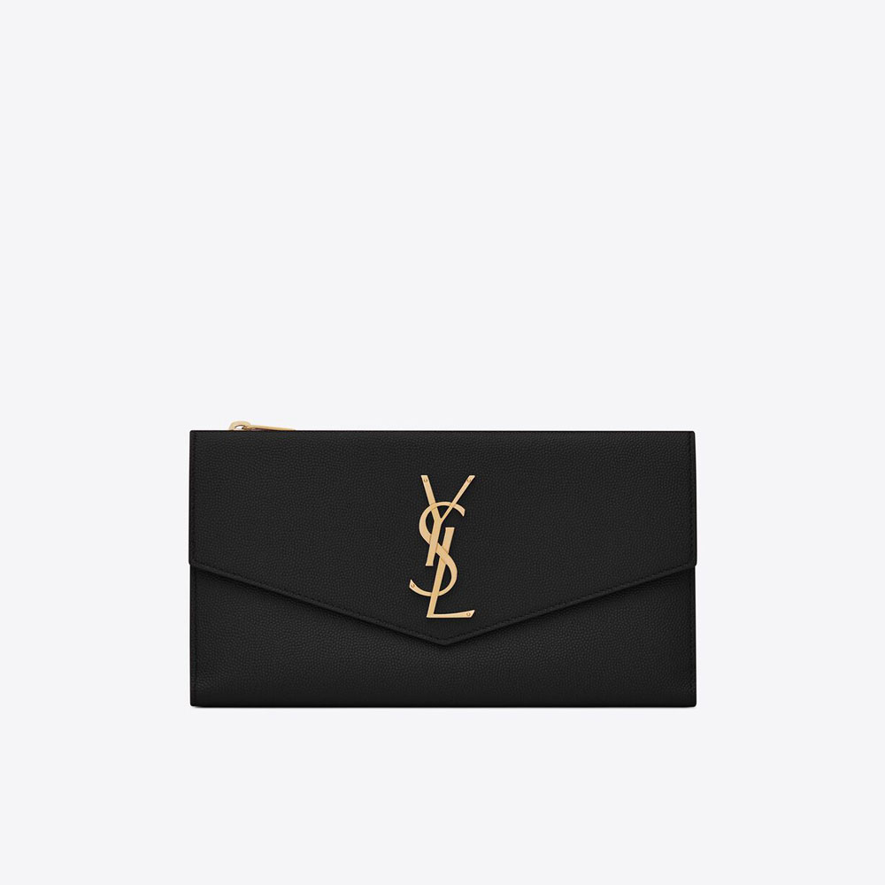 YSL Uptown Large Wallet In Grain De Poudre Embossed Leather 582124 1GF0J 1000